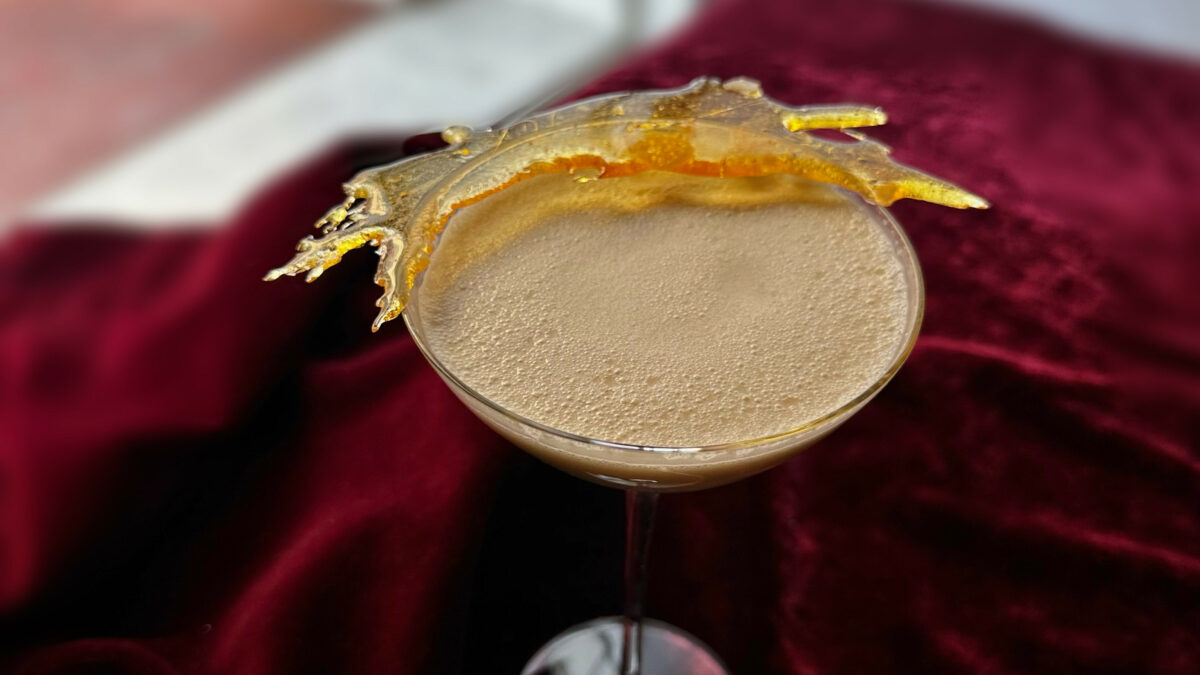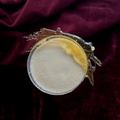 - Add garnish (caramellized sugar) on the edge of the glass.